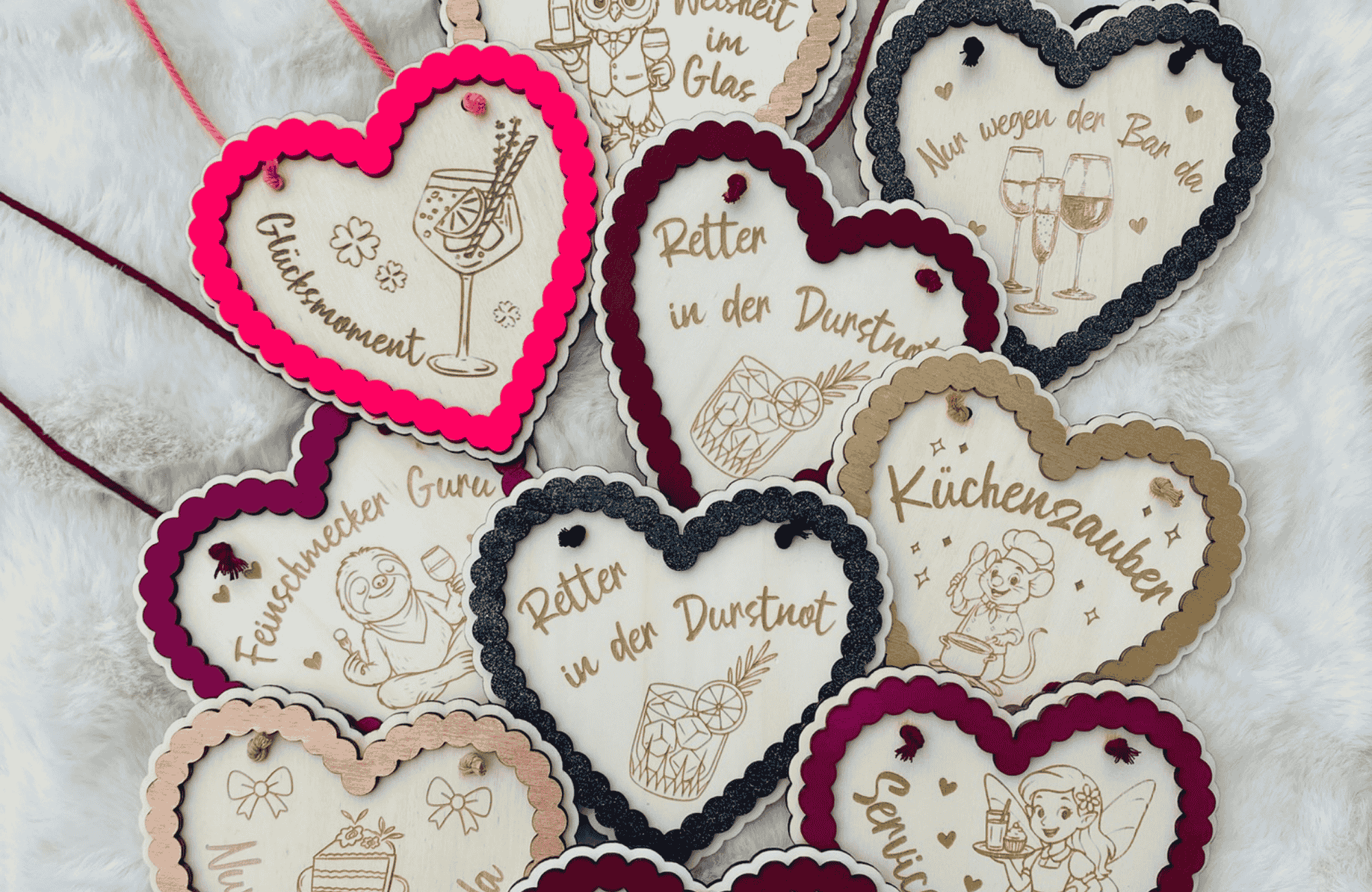 Jedes Herz wird gestaltet und veredelt, wie es zu eurem Anlass passt – wählt einen bestehenden Spruch oder bringt eure eigene Idee ein.